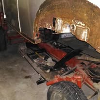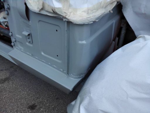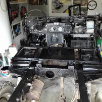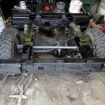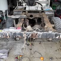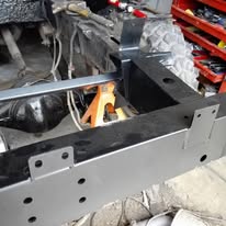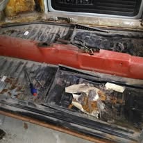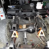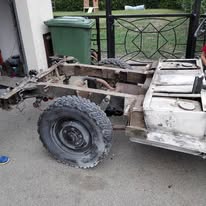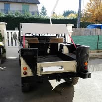 restauration complète pour ce land rover commando. remplacement demi châssis arrière, remplacement plancher rénovation moteur